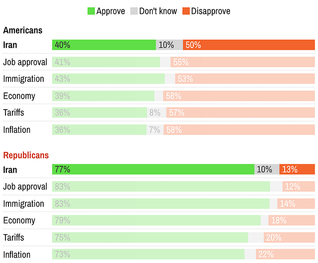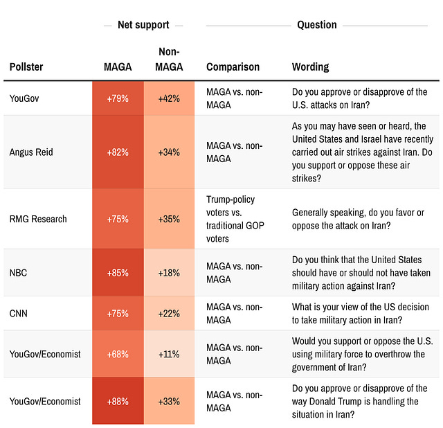 Will Iran break MAGA?So far, there’s not much erosion in Trump’s polling among Republicans. But elite opinion can trickle down to the party base.
